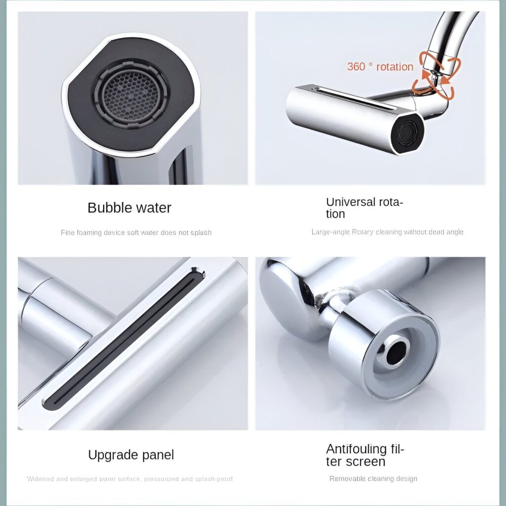 استفاده از سرشیر آبشاری ۴ حالته ۳۶۰ درجه به شما این امکان را میدهد که در زمان و انرژی خود صرفهجویی کنید. با کنترل بهتر جریان آب، میتوانید از هدر رفتن آب جلوگیری کرده و در عین حال از یک تجربه آشپزی لذت ببرید.